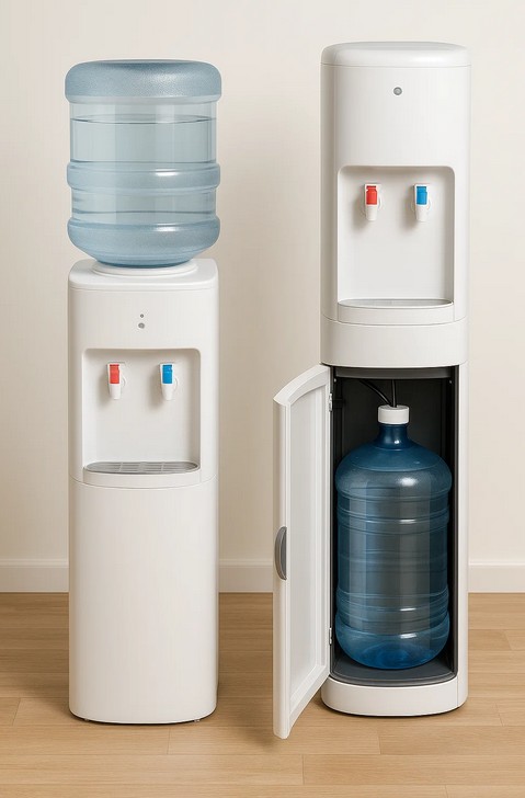 Unidades de carga inferiores: Las botellas ocultas brindan una apariencia más estilizada que se integra bien con muebles modernos y entornos de oficina. Requieren menos espacio vertical pero necesitan fácil acceso al compartimento a nivel del suelo.