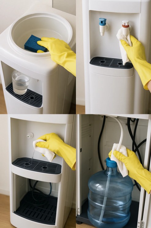 Dispensadores de agua de carga inferior: requieren más atención debido a bombas, mangueras y conectores. Es necesaria una limpieza regular y el reemplazo ocasional de piezas para mantener el flujo de agua y prevenir el crecimiento bacteriano.